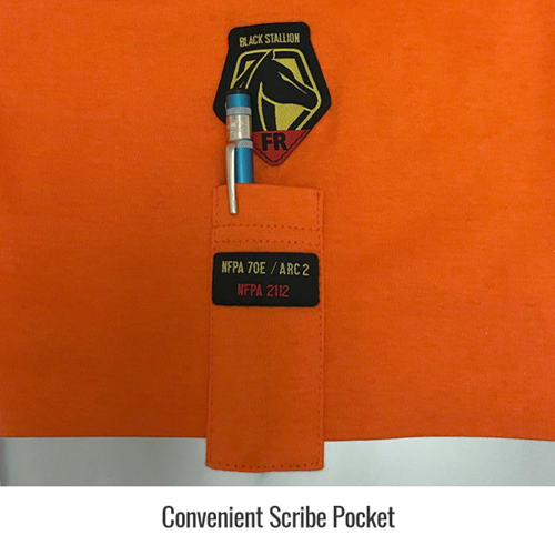 - Convenient scribe pocket on left sleeve